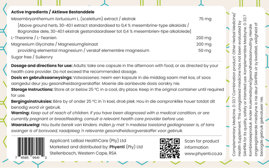At Phyenti, we combine the trusted knowledge of the South African indigenous remedies, with the validity of extensive academic research, to assure that you are getting the best product available in the market. Our approach to natural medicine is informed by the wealth of knowledge accumulated over generations, respecting the wisdom passed down through diverse healing practices. Phyenti has carefully crafted Clock-Out using a combination of natural ingredients to give you a world class sleep-aid ideal for people suffering from stress-induced insomnia.